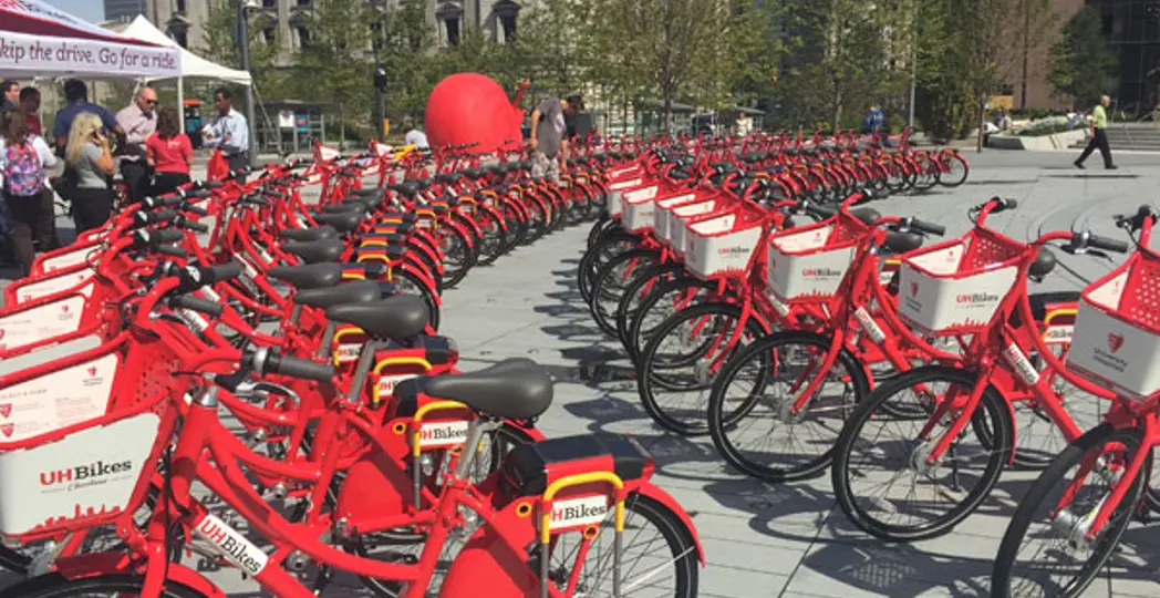 For the last two months you may have seen the nice green bikes around downtown Cleveland. They were just a teaser. At an official kickoff Wednesday on the newly renovated Public Square, UH Bikes replaced them with 250 shiny red bikes that are here to stay. “It’s a really big step to our goal of becoming truly bicycle friendly,” says Jacob VanSickle, Bike Cleveland executive director. “[It’s] an opportunity to really use it as another form of public transportation.” Here are three things to know before taking one for a spin.