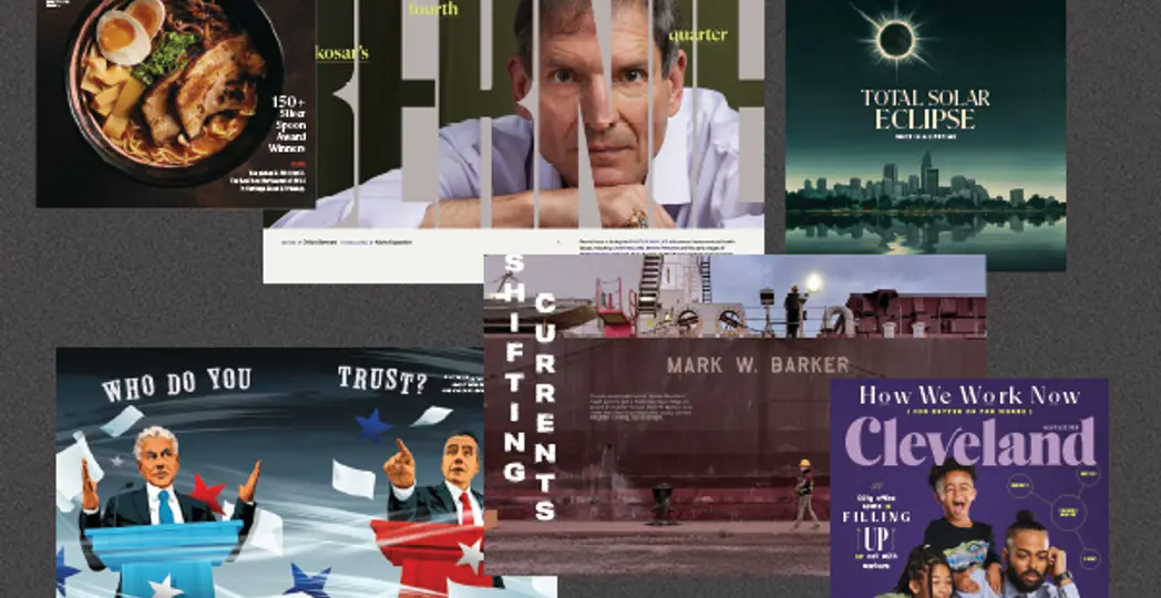 The awards, presented on June 6 at a ceremony, feature more than 100 categories of print and digital design as well as digital, video and written storytelling. Besides the Best in Ohio award, highlights included Best in Ohio: Art Director, honoring Erin Stinard's work directing projects throughout the magazine and covers, such as the stark (and scientifically accurate) illustration of the total solar eclipse in April 2024; Annie Nickoloff's detailed portrayal of life on board a Great Lakes freighter; Abigail Archer's depiction of a chaotic senate race; and Dillon Stewart's nuanced portrait of fading football star Bernie Kosar's battle with (and surprising approach to fighting) parkinson's and liver disease.