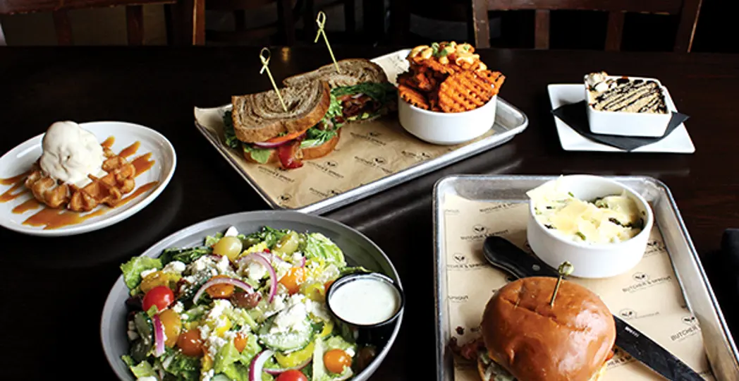 Why we love it: With an emphasis on “feel good for you food”, this spot has an inviting, homestyle energy. Indoor and outdoor seating, along with a small bar, provides plenty of space for groups and parties. All the meat sold in the display cases up front comes fresh from restaurant owners Jeff and Melanie Brunty’s farm in Ashland. Try this: The TFR Burger ($13) comes stacked with two Brunty Farms ground beef patties, American cheese, pickles, caramelized onions and the house burger sauce. Despite being a classic cheeseburger, the locally sourced, freshly ground patties are the star ingredient. 2231 Front St., Cuyahoga Falls, 330-576-3333, thefarmersrail.com