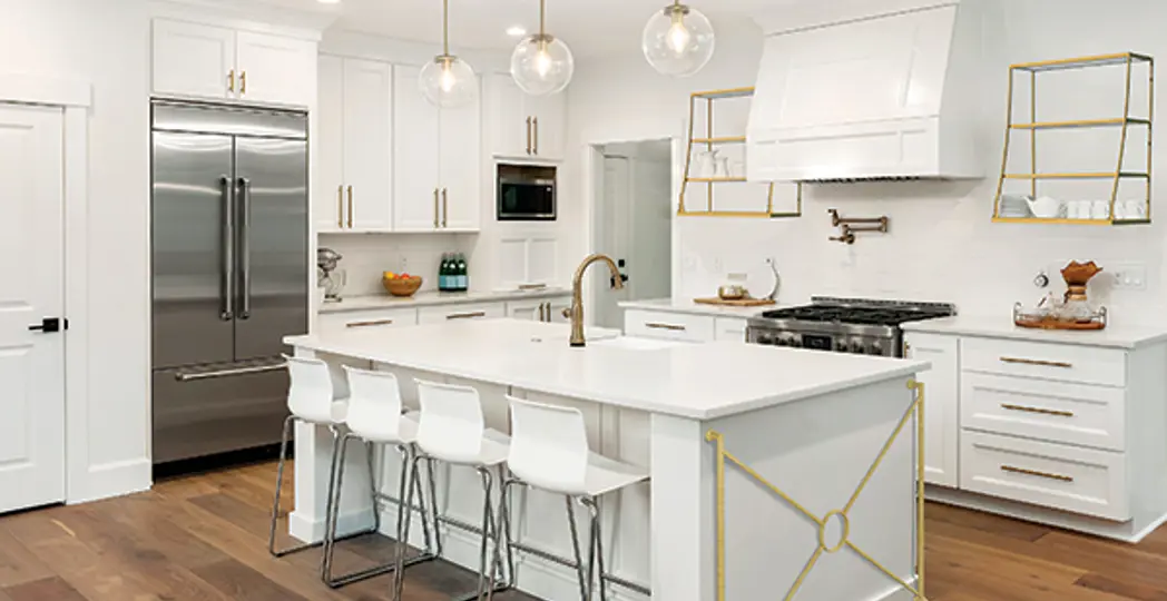 It’s all about the finishing touches. James and Darlene Justice, the owners of home design center Architectural Justice, created Fittings in 2018 to help homeowners add some glamour to their spaces. The artisan-made line of metal accents, which features shelving, decorative end caps, ornamental vanity bases and other accessories, can be used throughout your home to dress up furniture and cabinets. “We just saw a really large hole in what was out there available to kitchens and designers,” says James. Here’s three things to know about this sleek new collection.