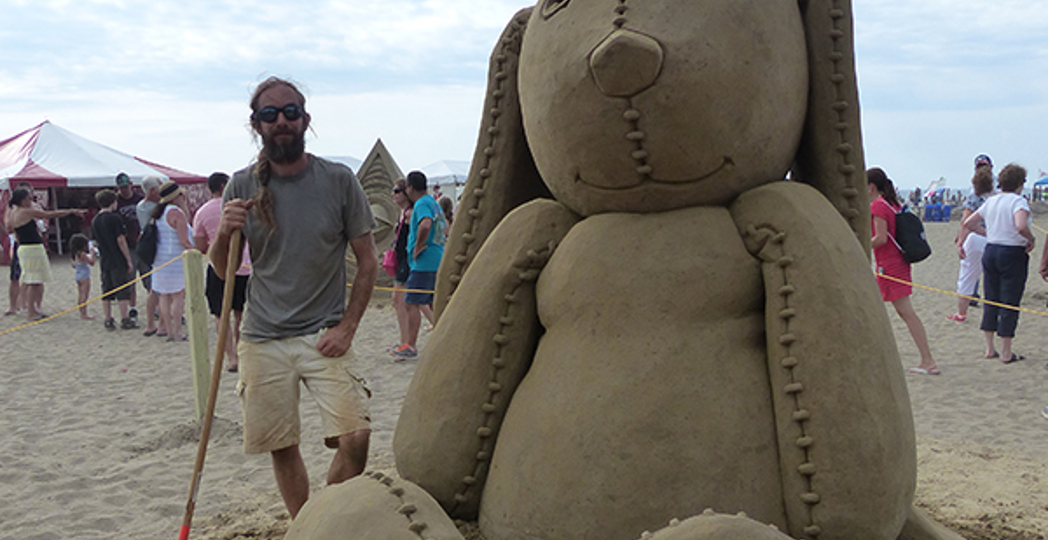 Find a good spot. Jara suggests finding a spot on the beach near the waterline, but not too close to the water so your creation isn’t in danger of being washed away. This area has the softest, siltiest sand that’s good for packing. “You don’t want to be too far from [the tide] because that’s where the best sand is, so there’s a little conundrum there,” says Jara.