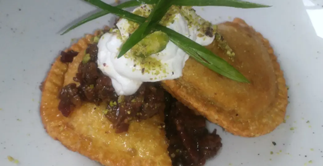 The result is a dish that’s decidedly Midwestern but still has broad appeal. Stuffed with a potato, cheese and green onion filling, the pierogies are deep-fried and topped with a sweet, oniony bacon jam and thick creme fraiche, both made in-house.