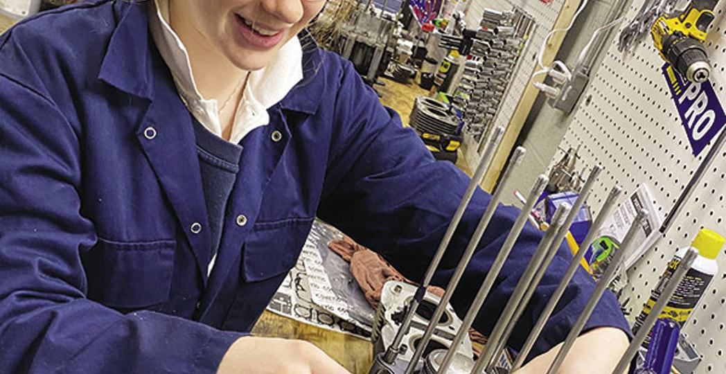 Last year, Alexandra Androsik dragged herself out of bed extra early to attend her mechanical engineering class at Magnificat High School. But she wasn’t doodling on notes or dozing off during lecture. Instead, she and three other classmates teamed up to take apart and rebuild a Honda CB350 motorcycle under the direction of Molly Vaughan and Brian Schaffran through their nonprofit Motogo. Now, 16-year-old Androsik is nurturing a previously undiscovered passion for mechanics.