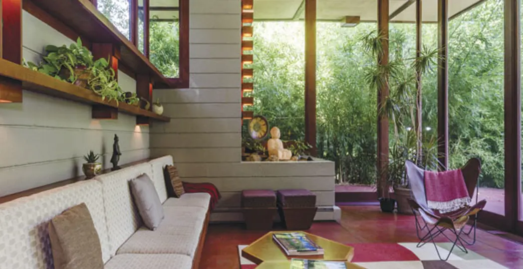 The house's charm lies in its nooks, crannies and details. Wright's affinity for Asian culture is exhibited in the indoor Buddha shrine and the outdoor bamboo garden, which hides the gas well that heats the house. "This place would be entirely free from the grid if we could figure out how to manufacture electricity."