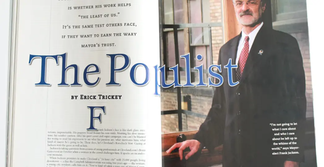 Frank Jackson's face is like dark glass: mysterious, impenetrable. His peppery beard frames his non-smile, blunting his slow monotone, his somber caution. After his quiet career and vague campaign, you can't be blamed for trying to read his expression to see what his passions are, what motivates him, what kind of mayor he's going to be. These days, he's Cleveland's Rorschach blot: Gazing at Jackson tests the gazer as well as him.